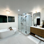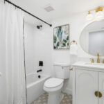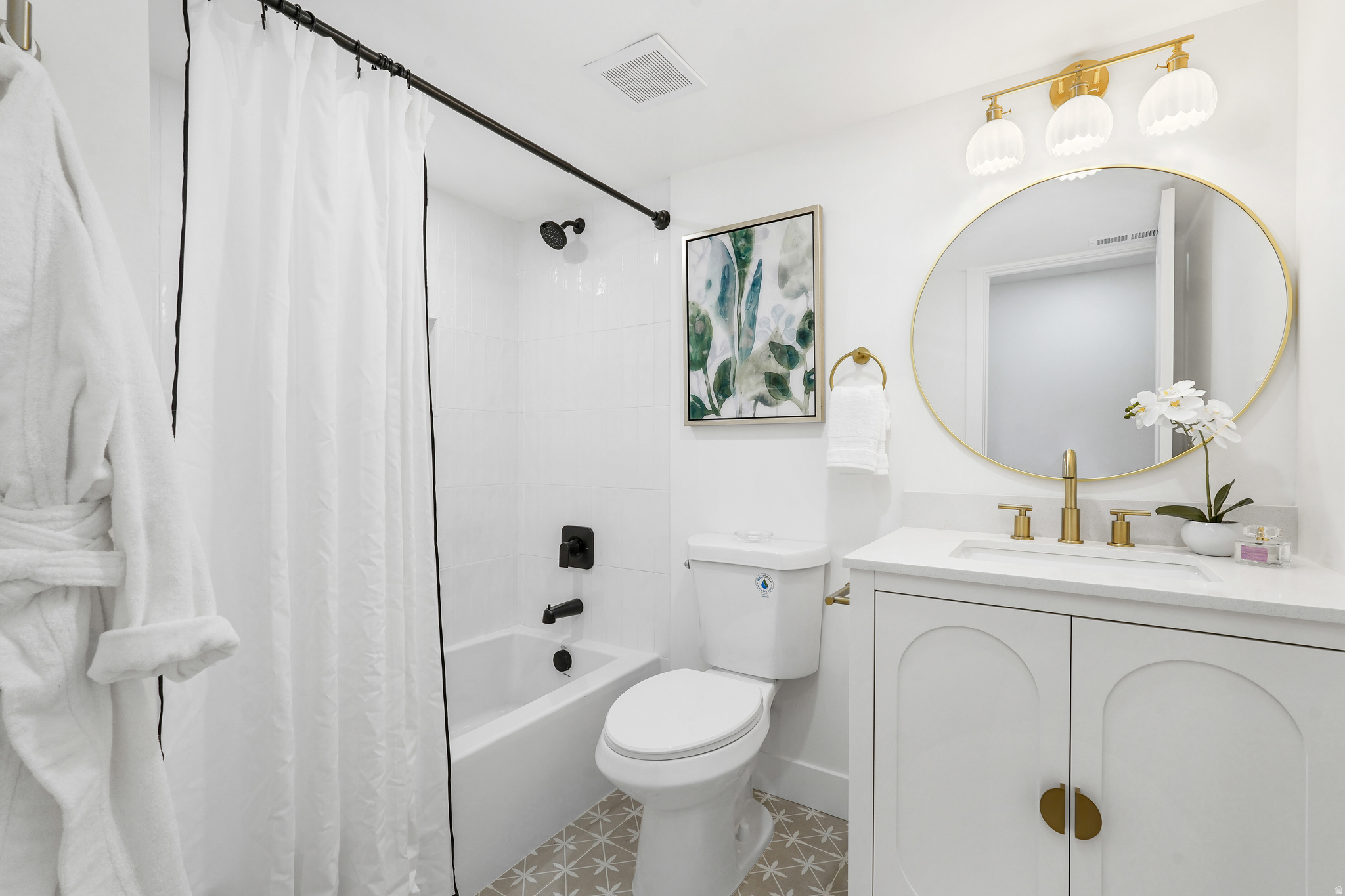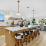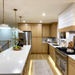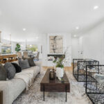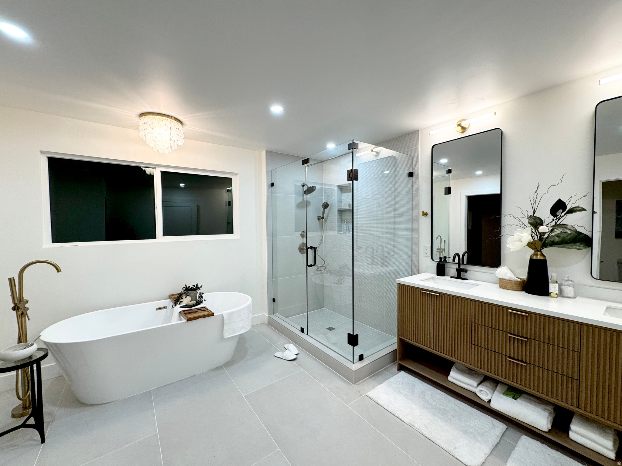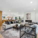 The renovation focused on high-impact upgrades: a redesigned chef’s kitchen with high-end appliances and a massive island, a true primary suite retreat with spa-style bath and soaker tub, refreshed living spaces, enhanced natural light, and improved functionality including dual laundry hookups on both levels.